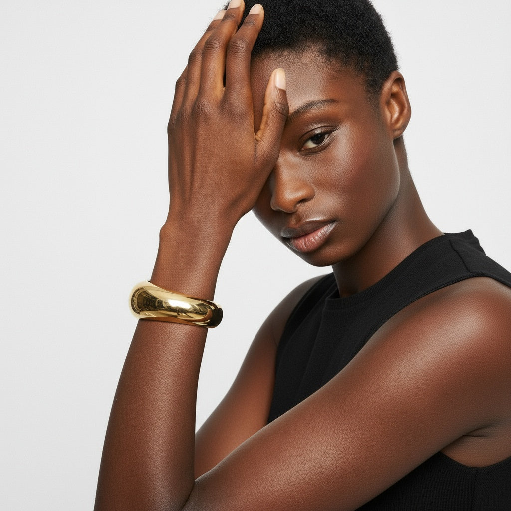 Avec ses lignes douces et sa forme sculptée, ce bracelet doré sublime instantanément ton poignet. Sa silhouette ondulée capte la lumière et apporte une touche chic et moderne à n’importe quelle tenue.